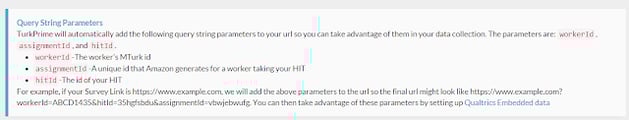 However, relying on Workers to provide their IDs can result in the loss of data because some Workers may not enter their ID correctly. Embedded query strings solve this problem by guaranteeing that Worker IDs are captured automatically and recorded correctly for each Worker.